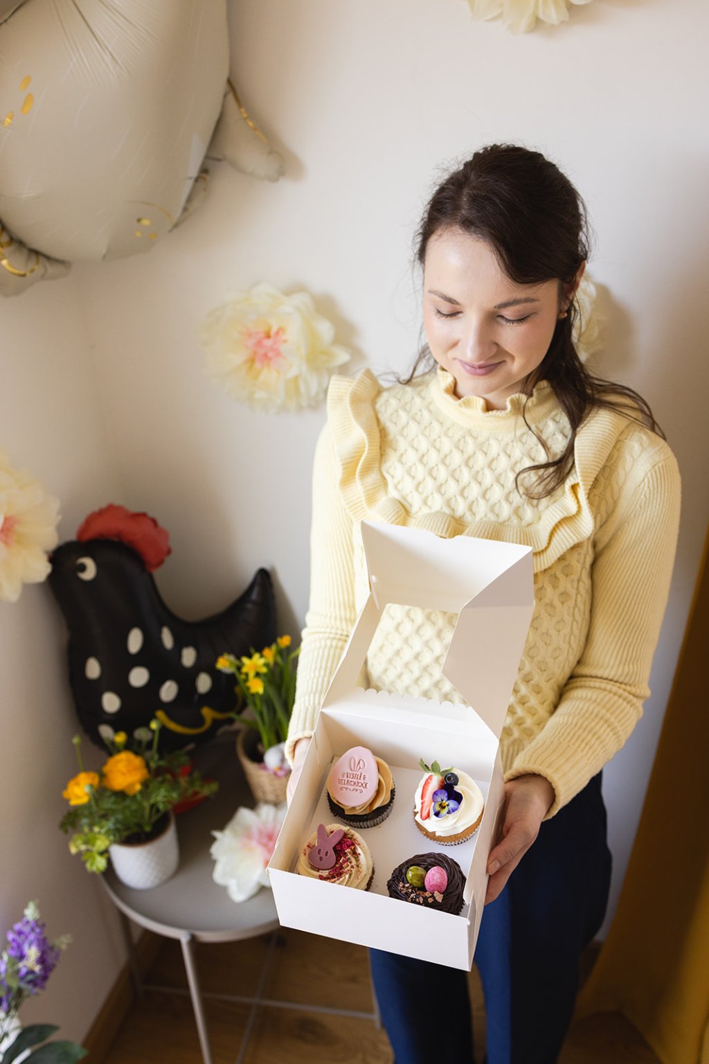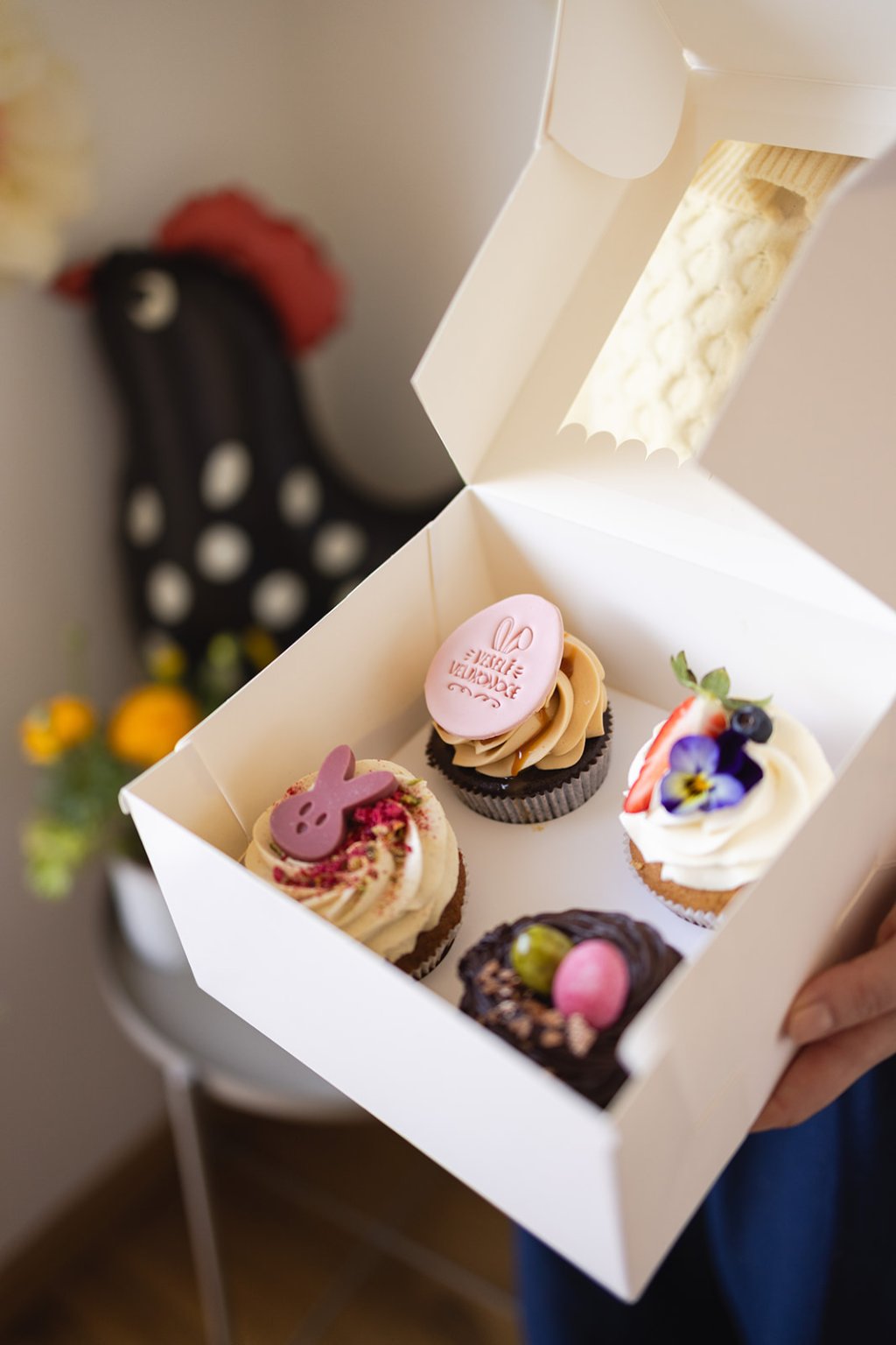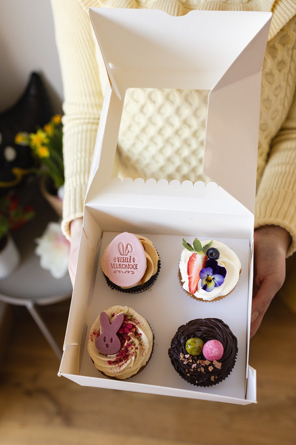 Velikonoční krabička se 4 cupcakes obsahuje:
