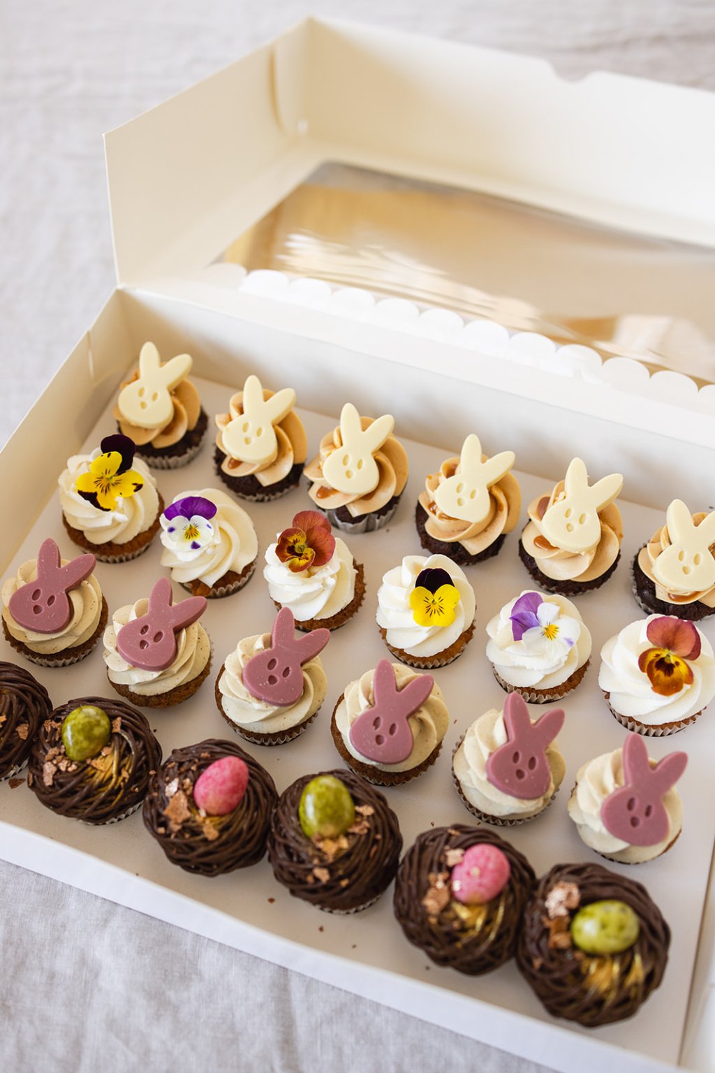 Velikonoční krabička s 24 mini cupcakes obsahuje: