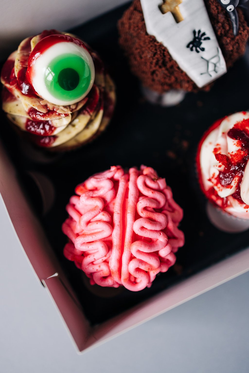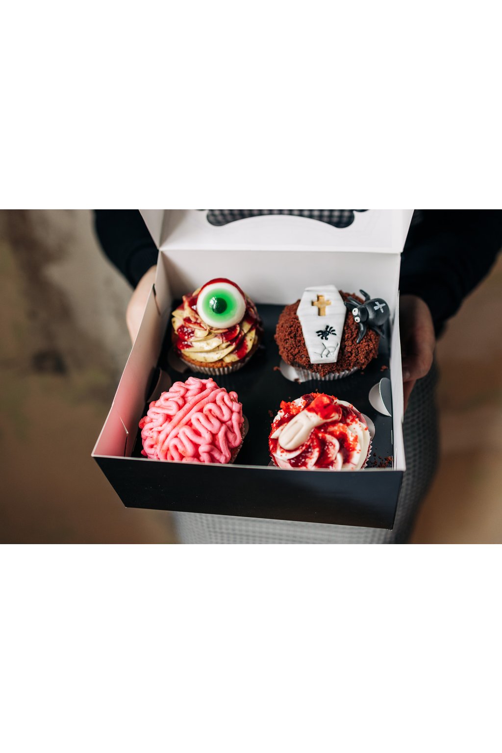 Speciální limitovaná krabička 4 ks cupcakes s halloweenským zdobením.
