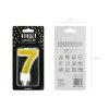 Zlatá svíčka ve tvaru třpytivé číslice "7", vhodná na jakékoliv narozeninové slavení.