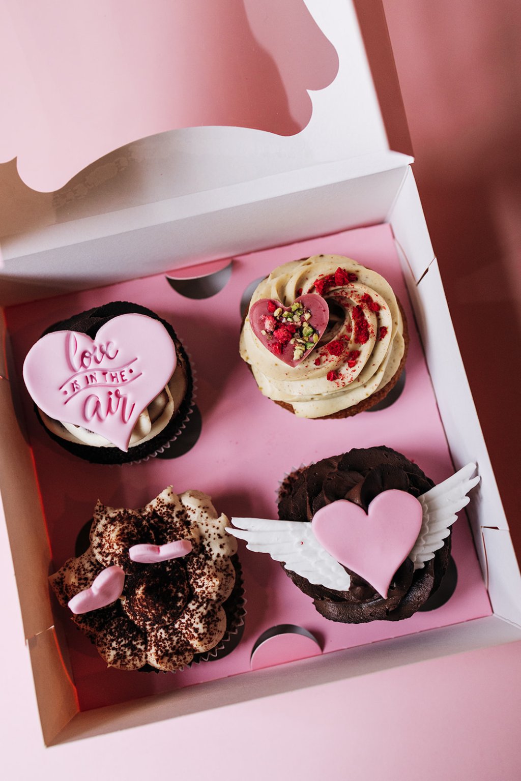 Valentýnská krabička, která obsahuje 4ks cupcakes.