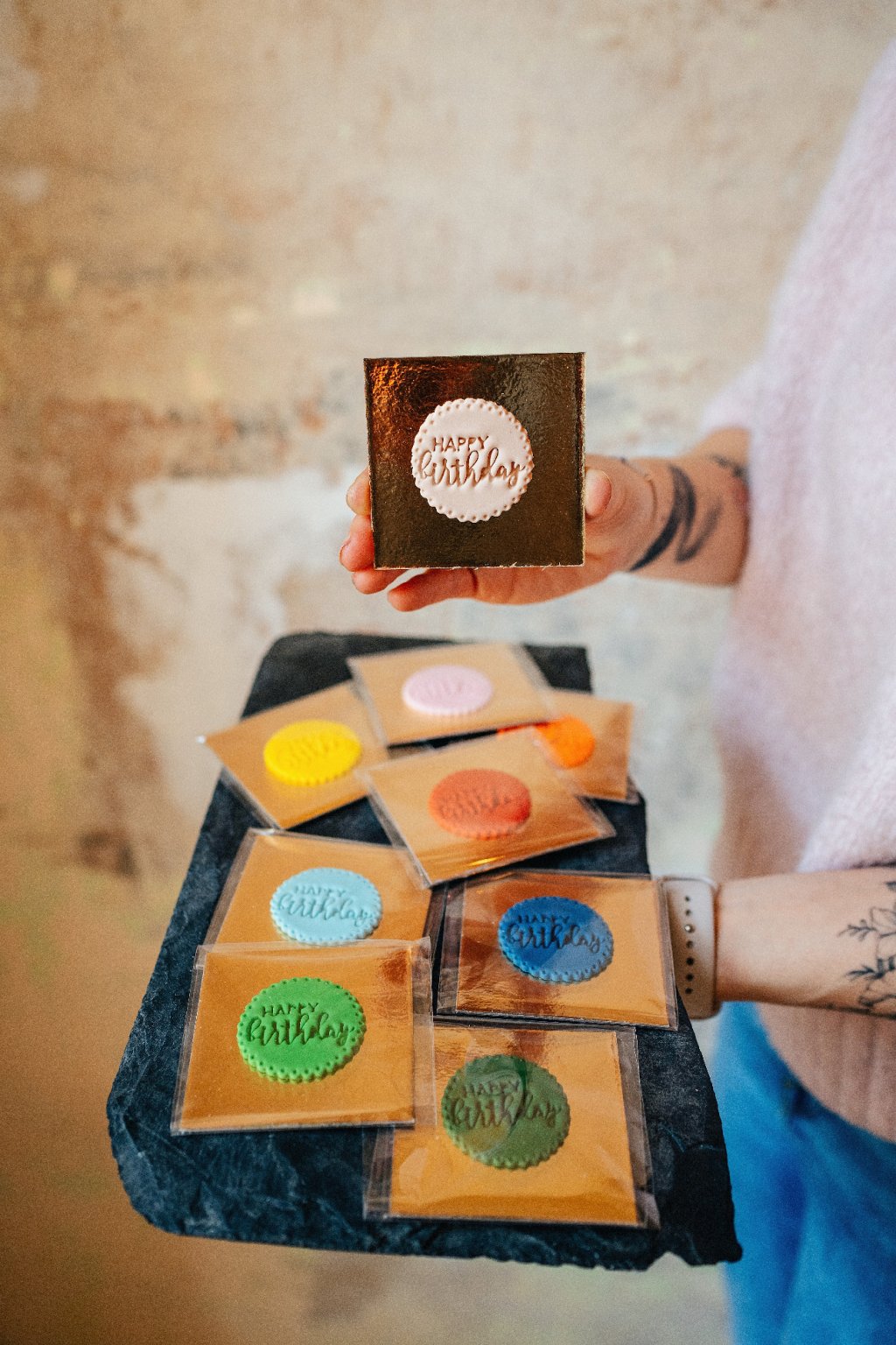 Fondánové zdobení v různých barvách vyráběné přímo u nás v Lelí's Cupcakes, vhodné na ozdobu cupcakes i dortů.