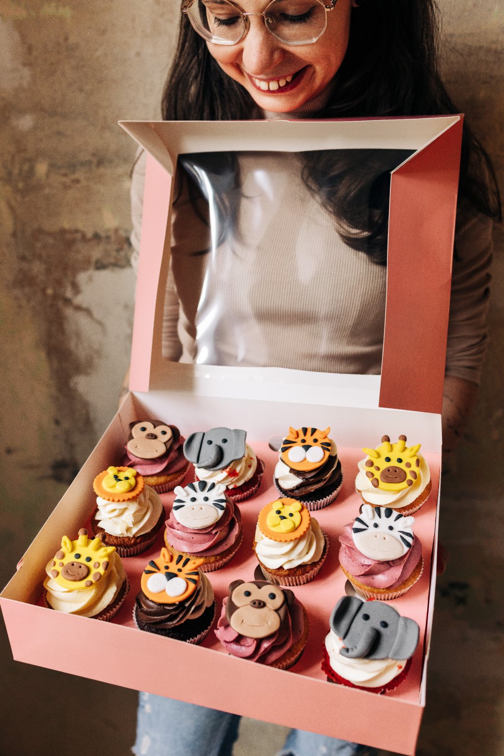 Krabička 4ks cupcakes se safari zvířátky obsahuje:
