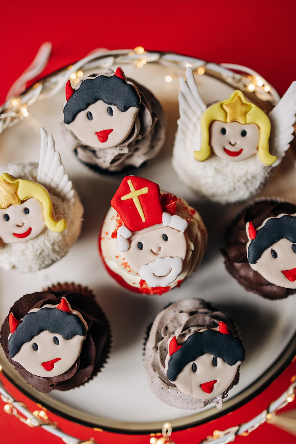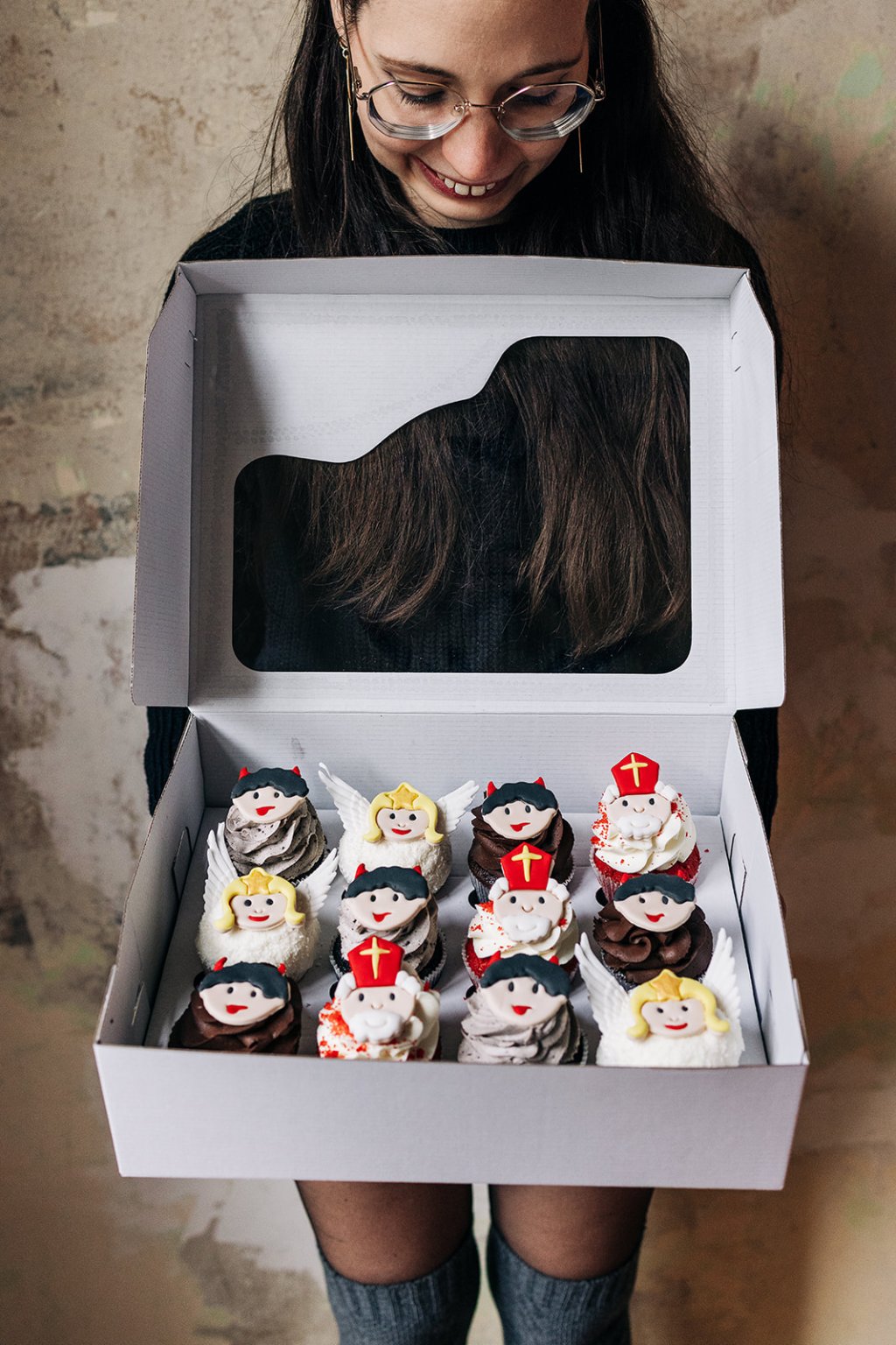 Mikuláš, čert a anděl - 12ks cupcakes (v krabičce)
