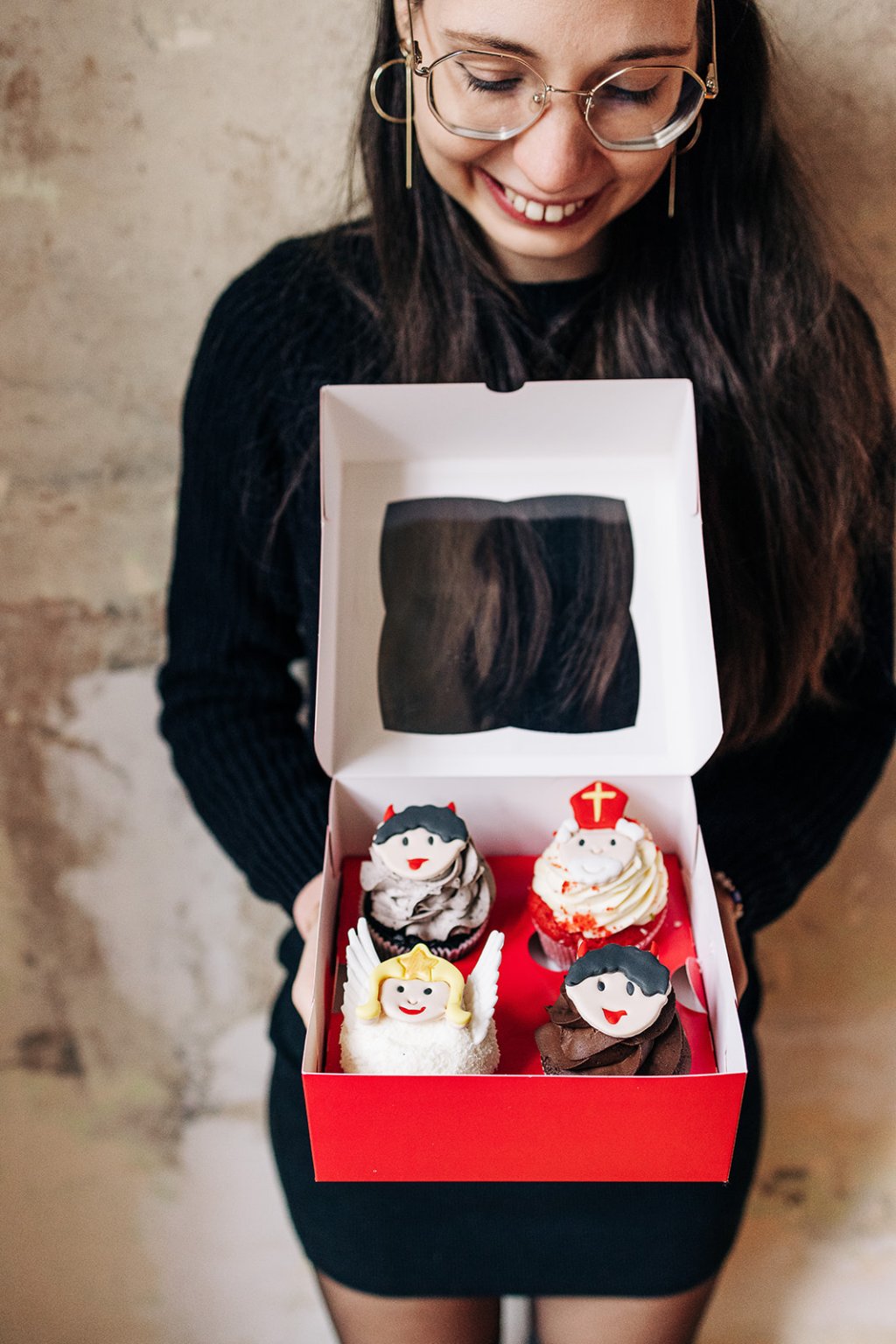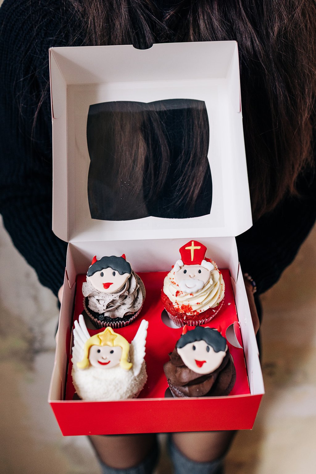 Mikuláš, čert a anděl - 4ks cupcakes (v krabičce)