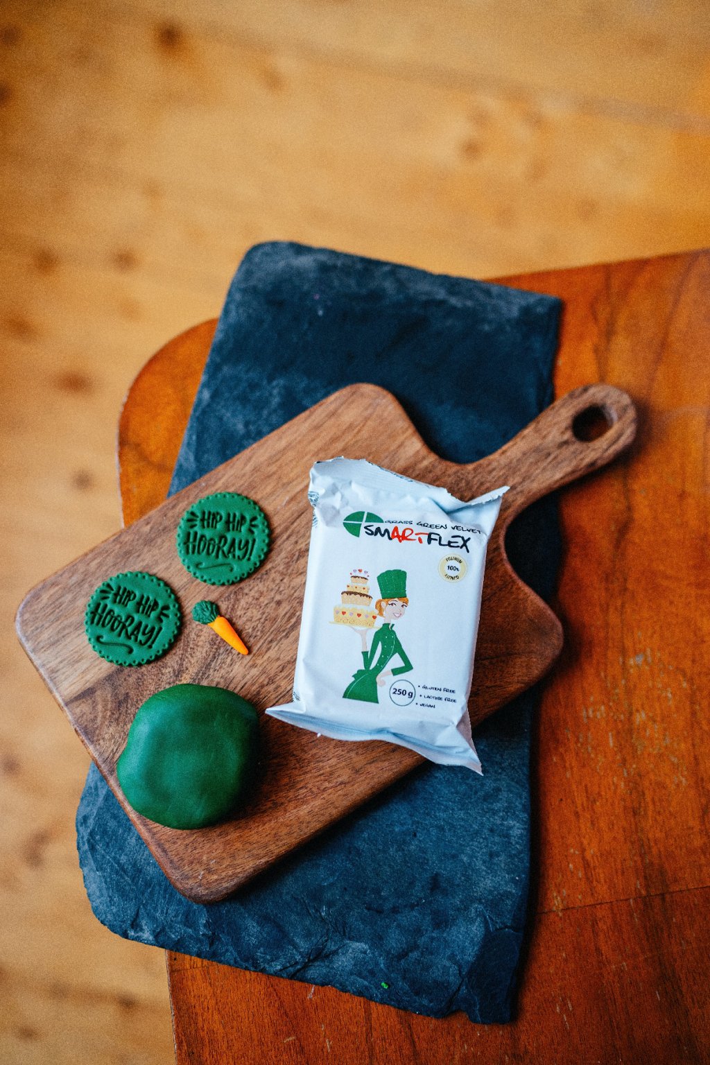 Tmavě zelená modelovací a potahovací hmota s příchutí vanilky, kterou používáme u nás v Lelí's Cupcakes pro tvorbu různých jedlých dekorací.