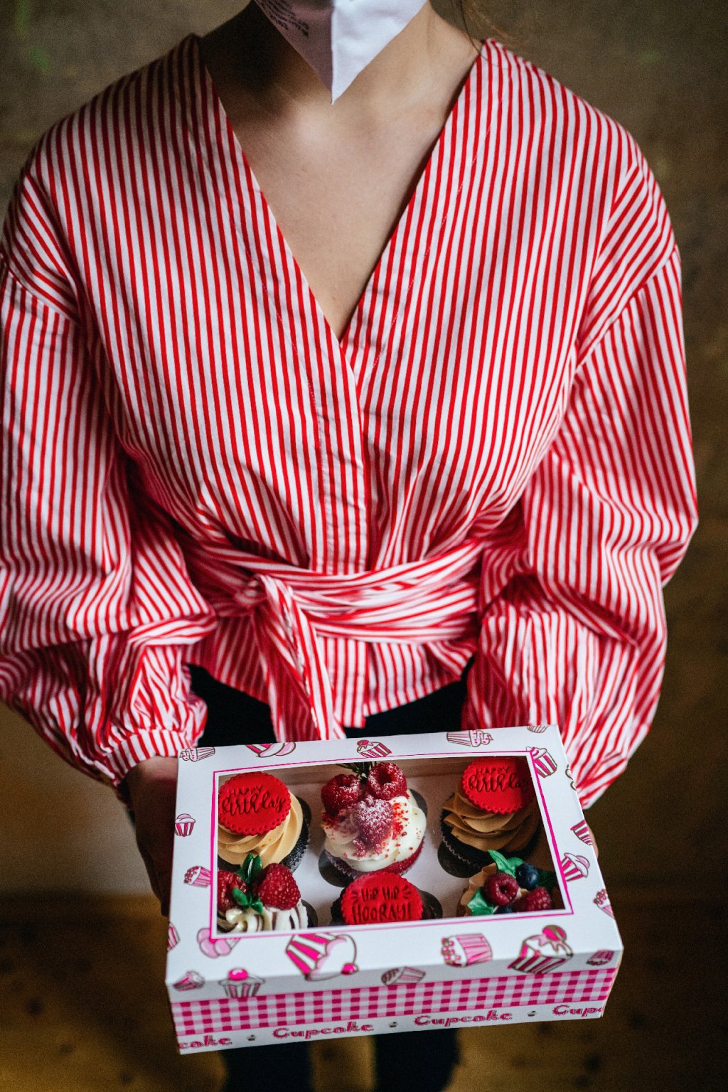 Červené narozeninové 6ks cupcakes (v krabičce)