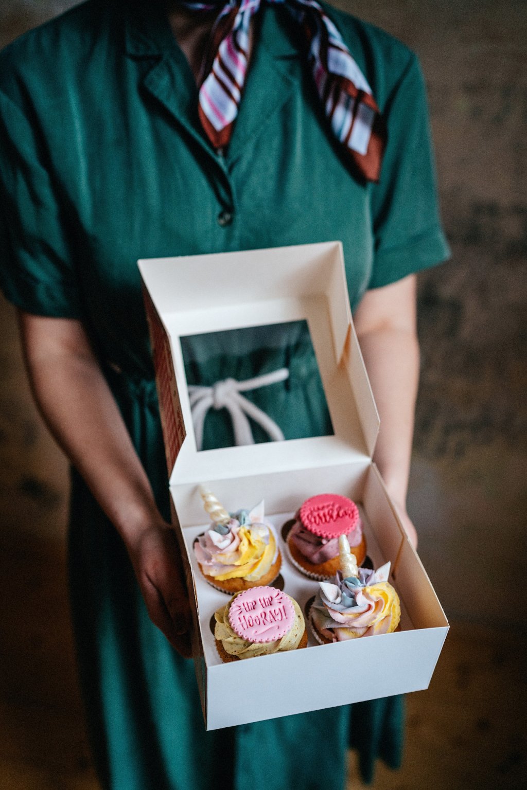 2x jednorožčí cupcakes - vanilkový korpus plněný domácím malinovým rozvarem s cream cheese krémem barveným přírodními barvami