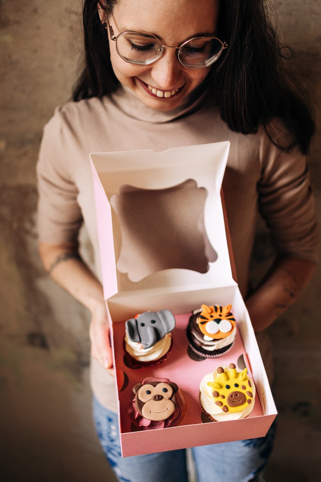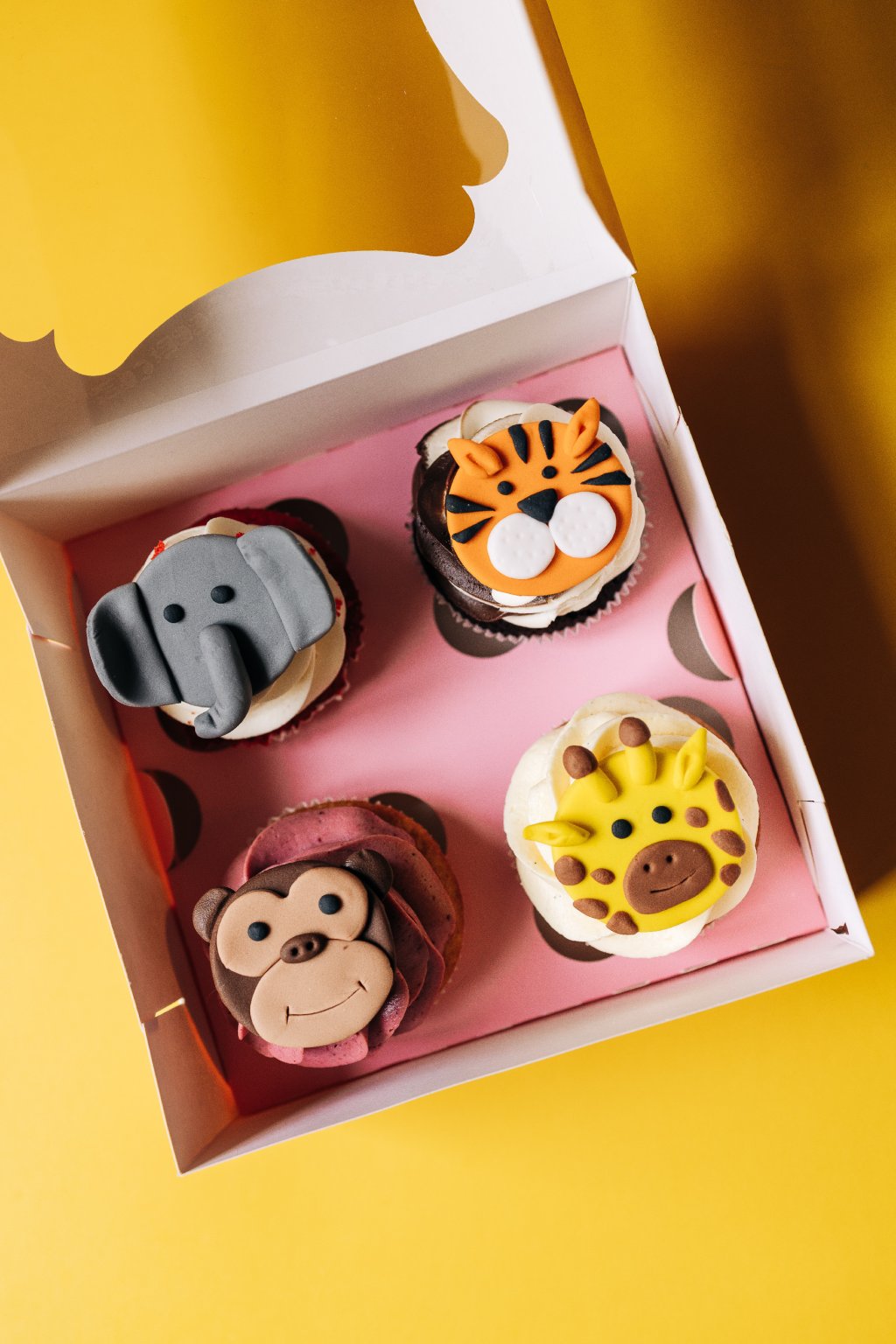 Krabička 4ks cupcakes se safari zvířátky obsahuje: