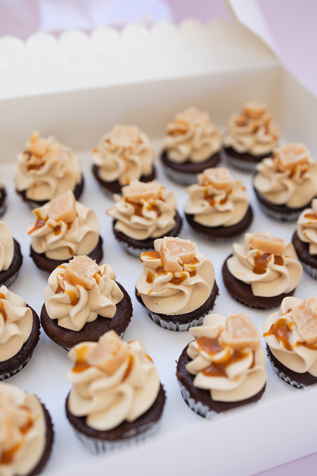 24 mini cupcakes slaný karamel v krabičce.