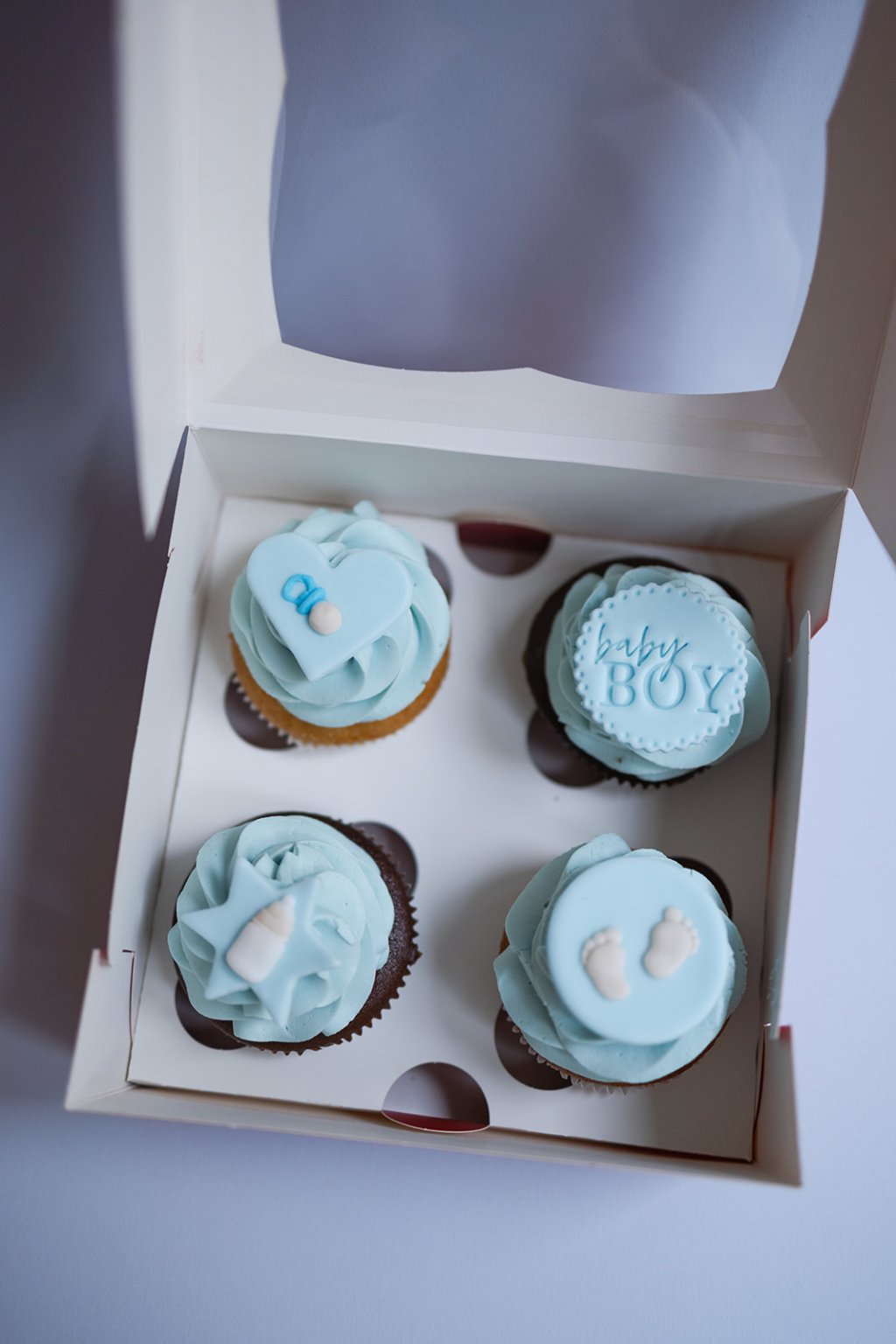 4ks cupcakes v modré barvě, které se hodí pro každou příležitost, kdy chcete oslavit příchod Vašeho šmudlíka.