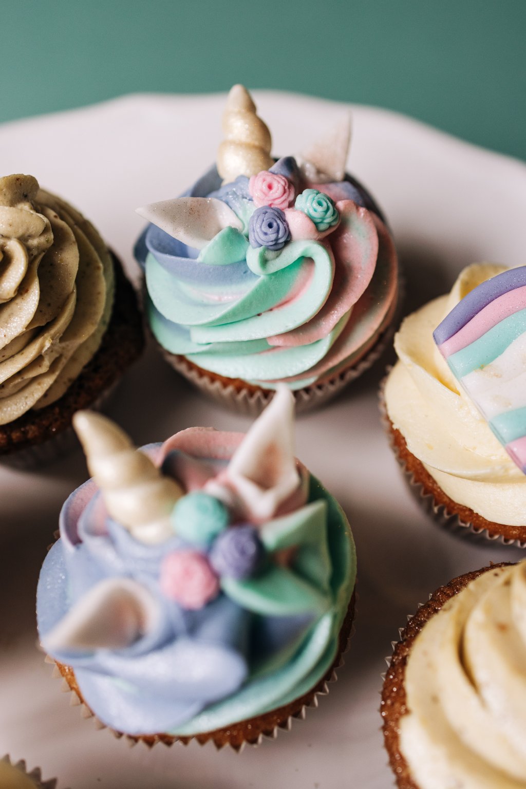 3x jednorožec - vanilkový korpus plněý malinovým rozvarem s duhovým cream cheese krémem