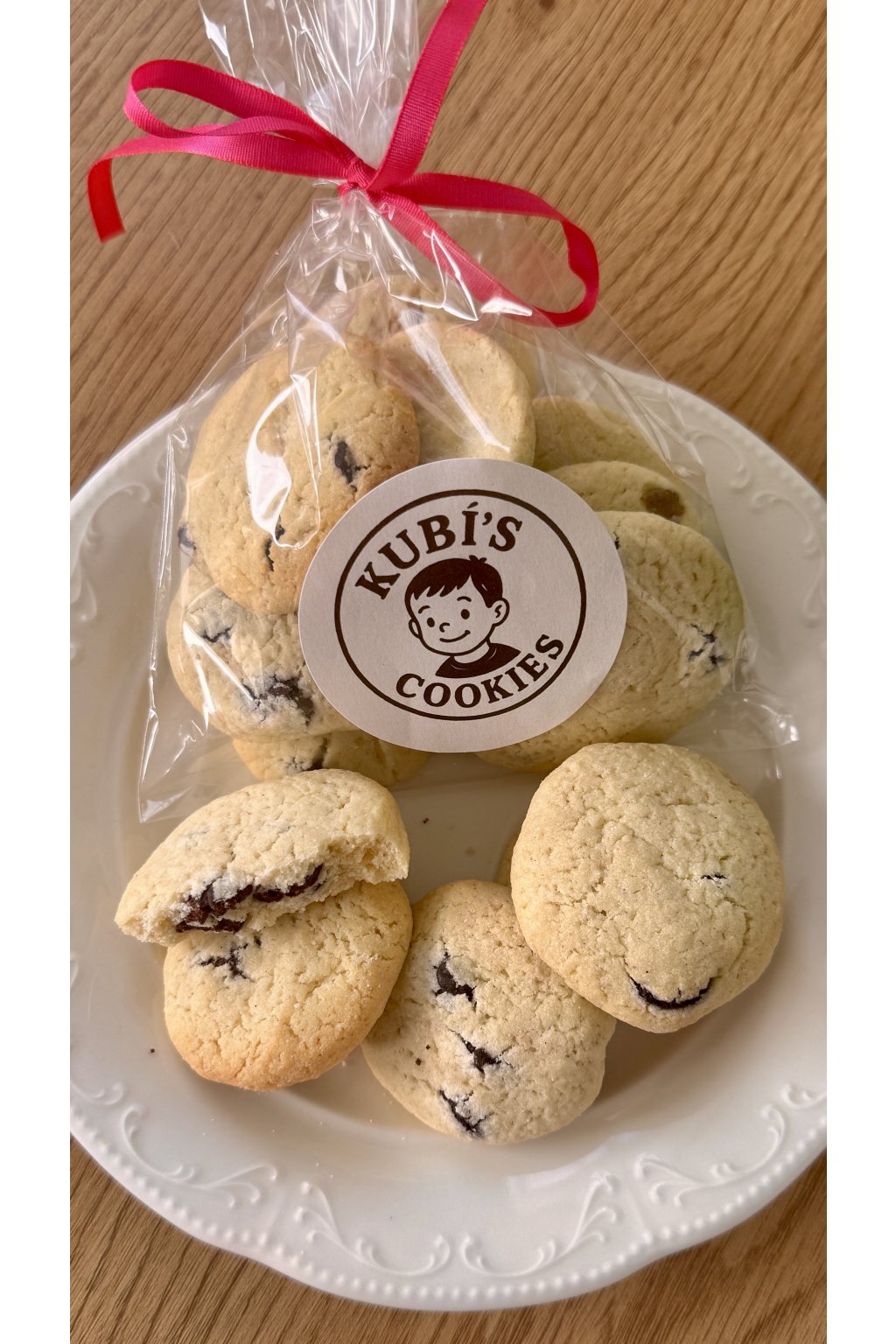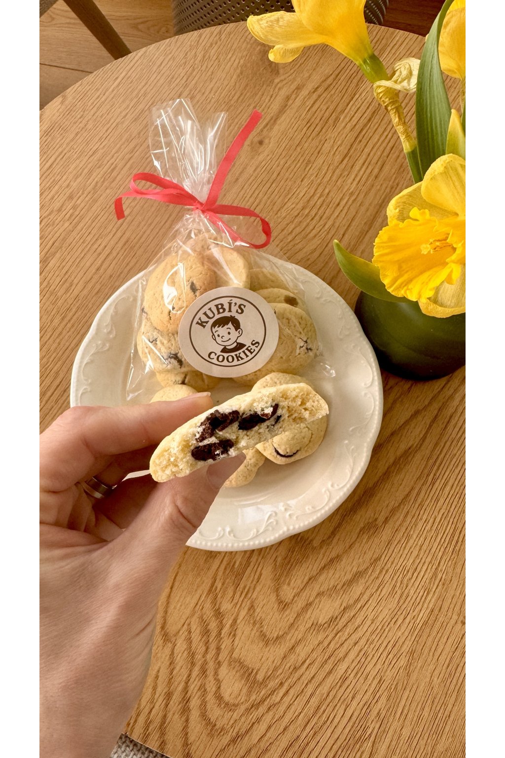 Kubí’s cookies vymyslel osmiletý Kubík (syn naší cupcakové Lelí) jako svůj projekt na jarní prázdniny. Prošly náročným testováním a ochutnáváním rodiny a přátel, Kubík je peče z másla, žádných náhražek a přidává do nich kvalitní belgické čoko pecky. Jsou tak dobré, že jsme se o ně s vámi rozhodli podělit. Budeme rádi, když ochutnáte a podpoříte Kubíka v jeho podnikání.