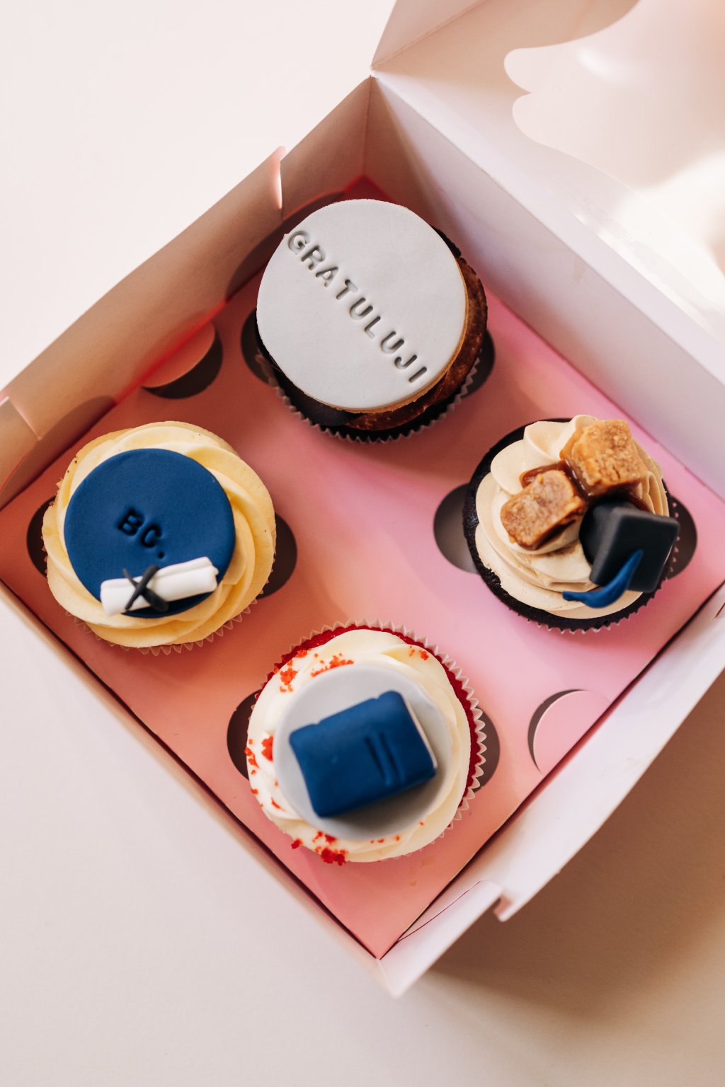 Blahopřání k titulu - 4ks cupcakes (v krabičce)
