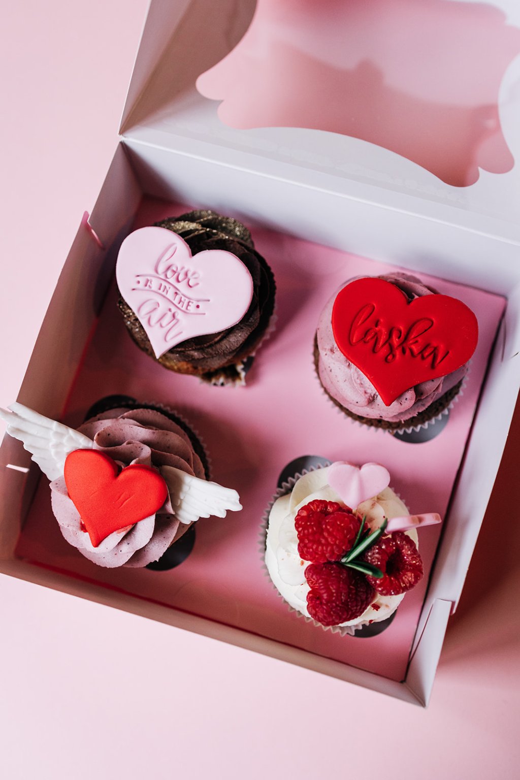 Valentýn - 4ks bezlepkových cupcakes (v krabičce)