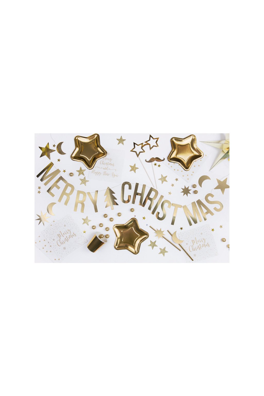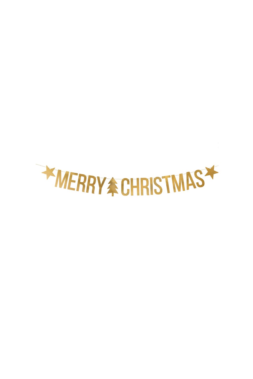 Zlatá girlanda na zavěšení s nápisem "Merry Christmas" na každou třpytivou vánoční párty.