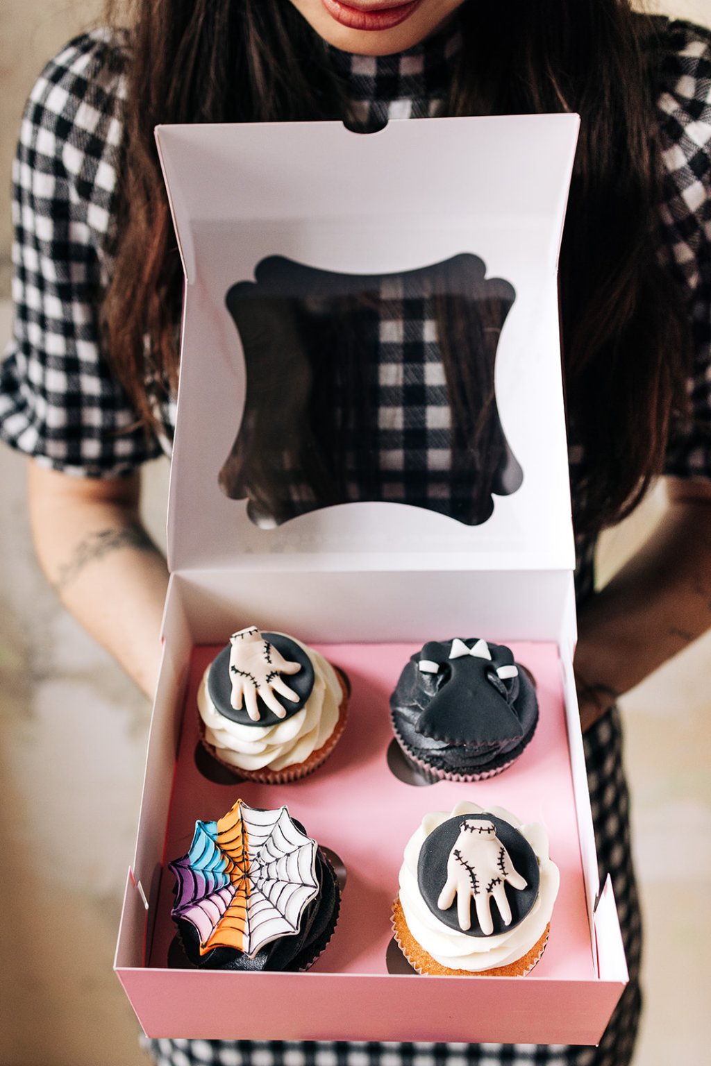 Temně pastelová edice cupcakes ke známémemu seriálu Wednesday.